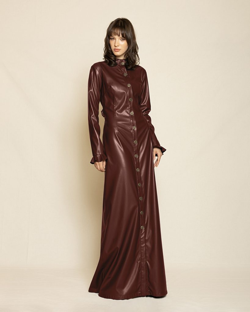 Leather Shirt Dress with Flared Hem ST-0128 Bordo