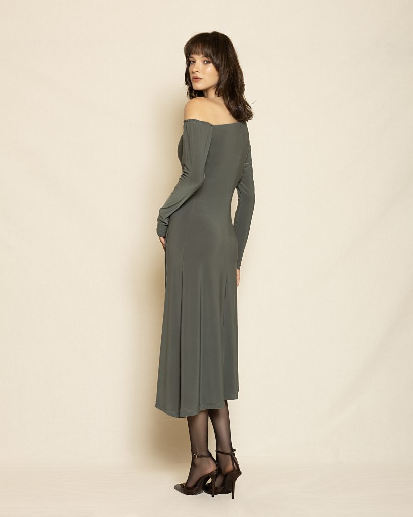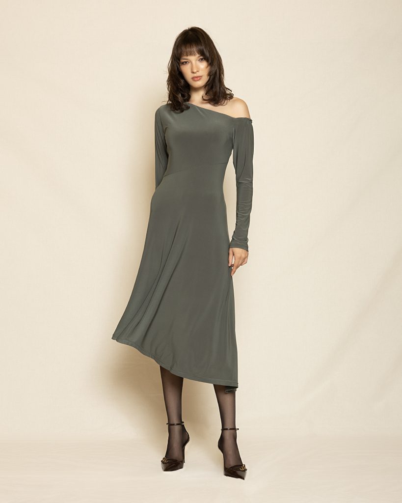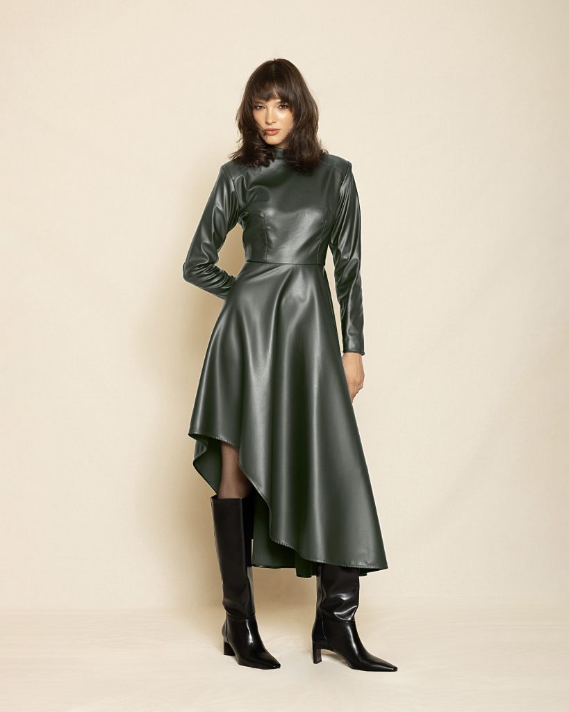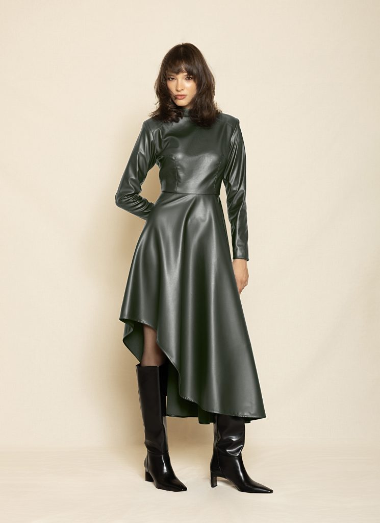 High – Neck Leather Asymmetric Dress ST-0120 Green