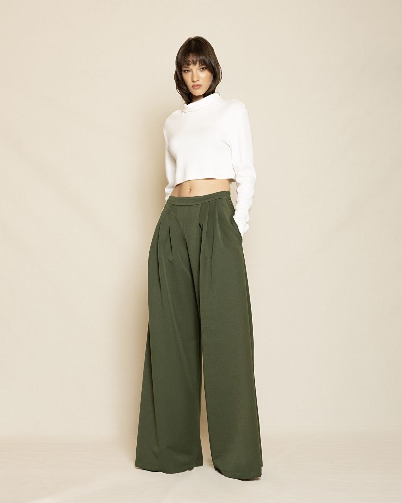 High – Waist Wide – Leg Trousers ST-0142 Green