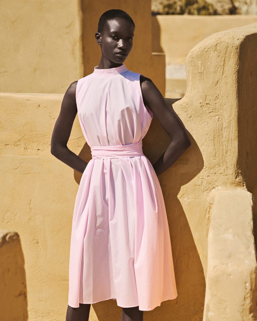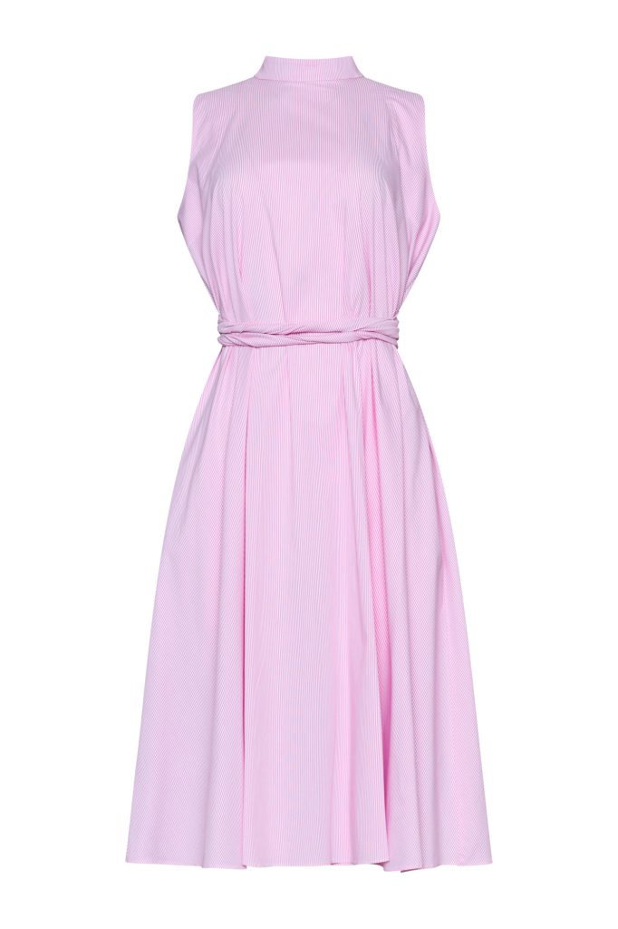 Pleated Dress with Belt at the waist ST-6040 Pink