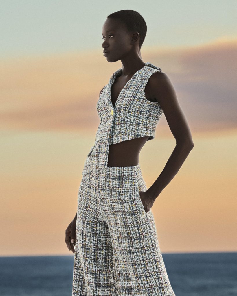 Asymmetric Cropped Tweed Vest ST-6082 Yellow