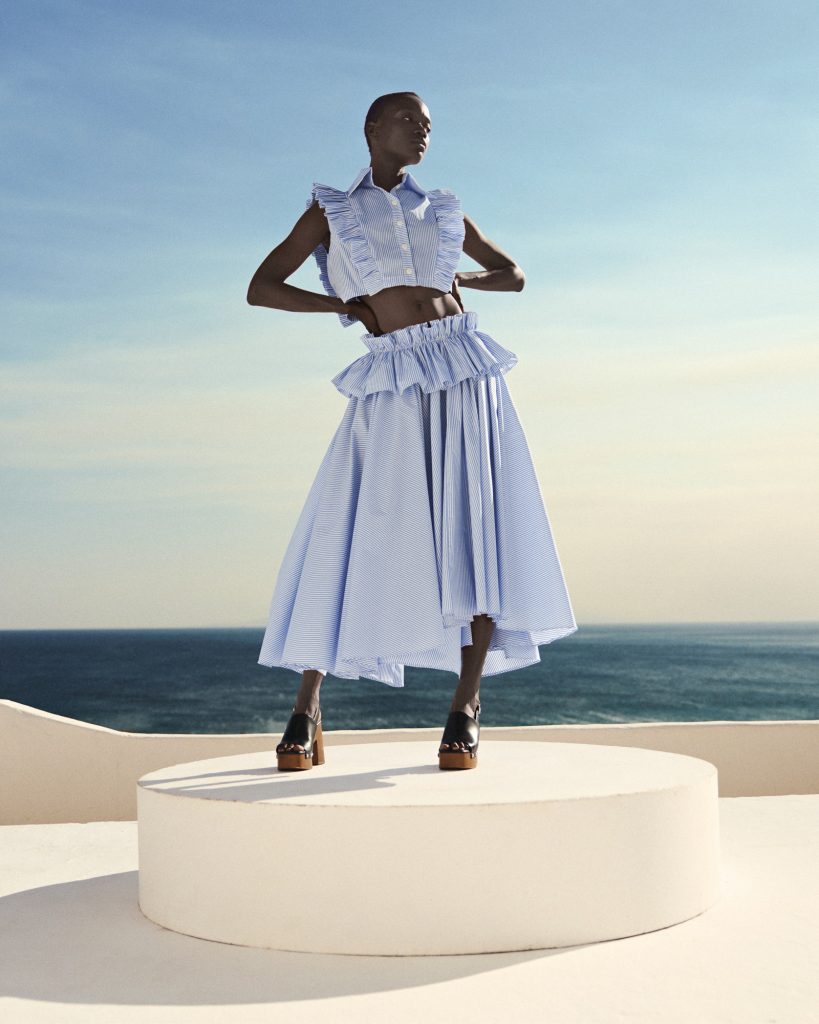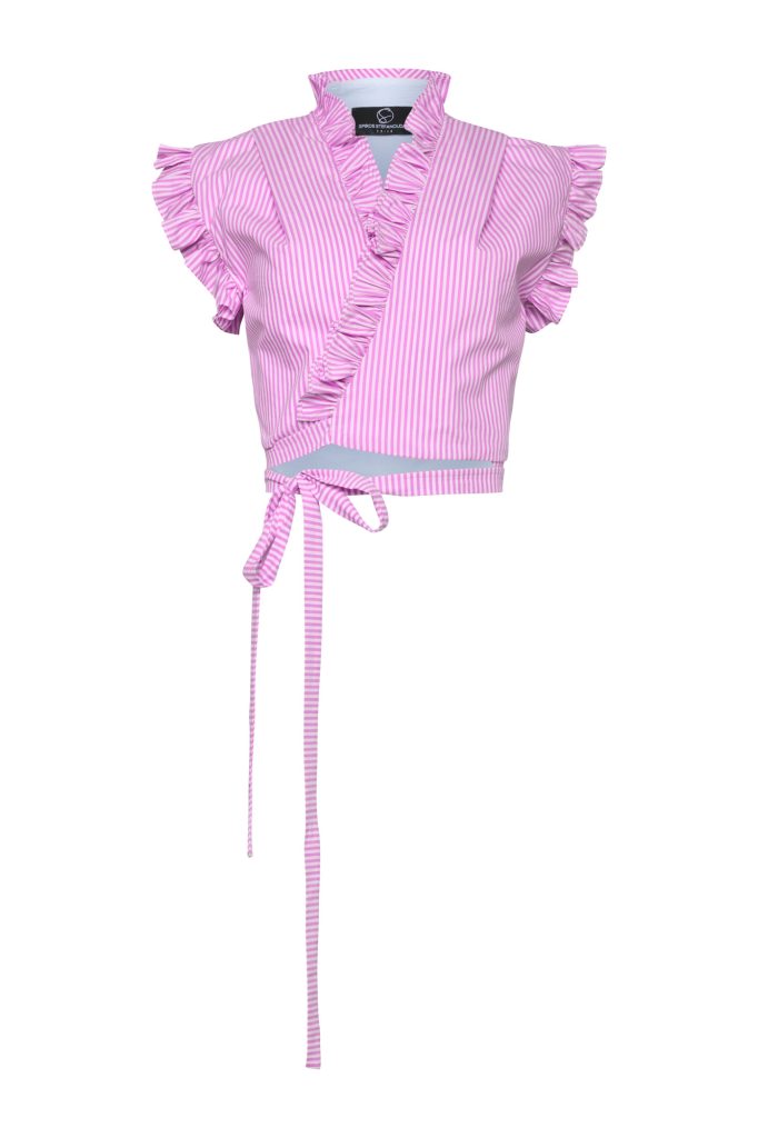 V-neck Ruffled Crop Top ST-6055 Pink Stripe