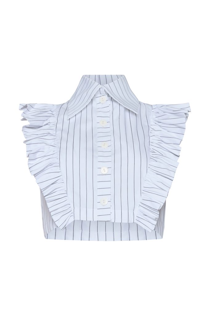 Cropped Buttom-up Shirt ST-6007 Black Stripe