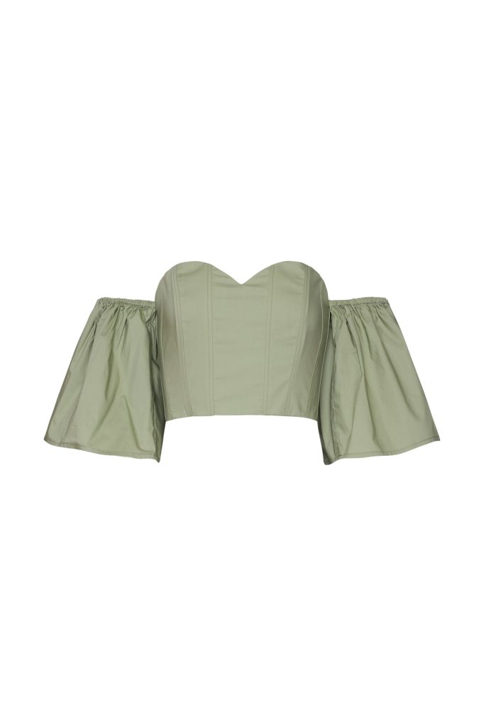 Puff Sleeve Corset top ST-6044 Olive