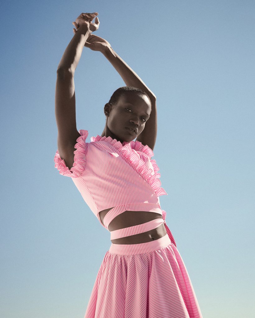 V-neck Ruffled Crop Top ST-6055 Pink Stripe
