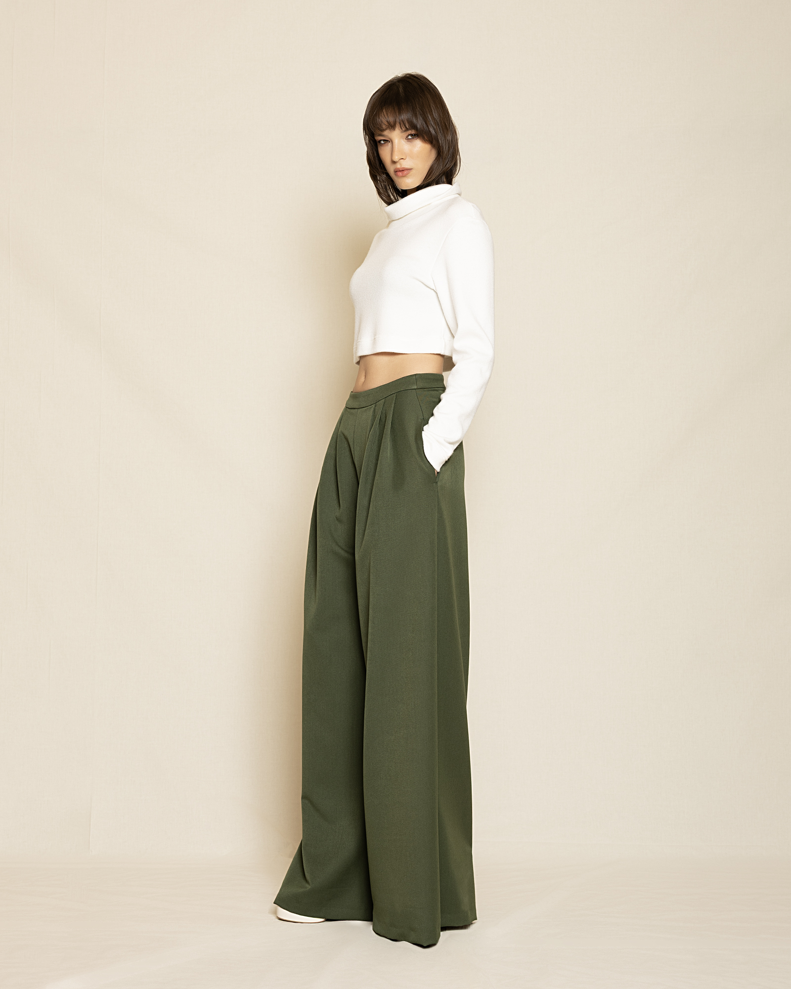 High – Waist Wide – Leg Trousers ST-0142 Green