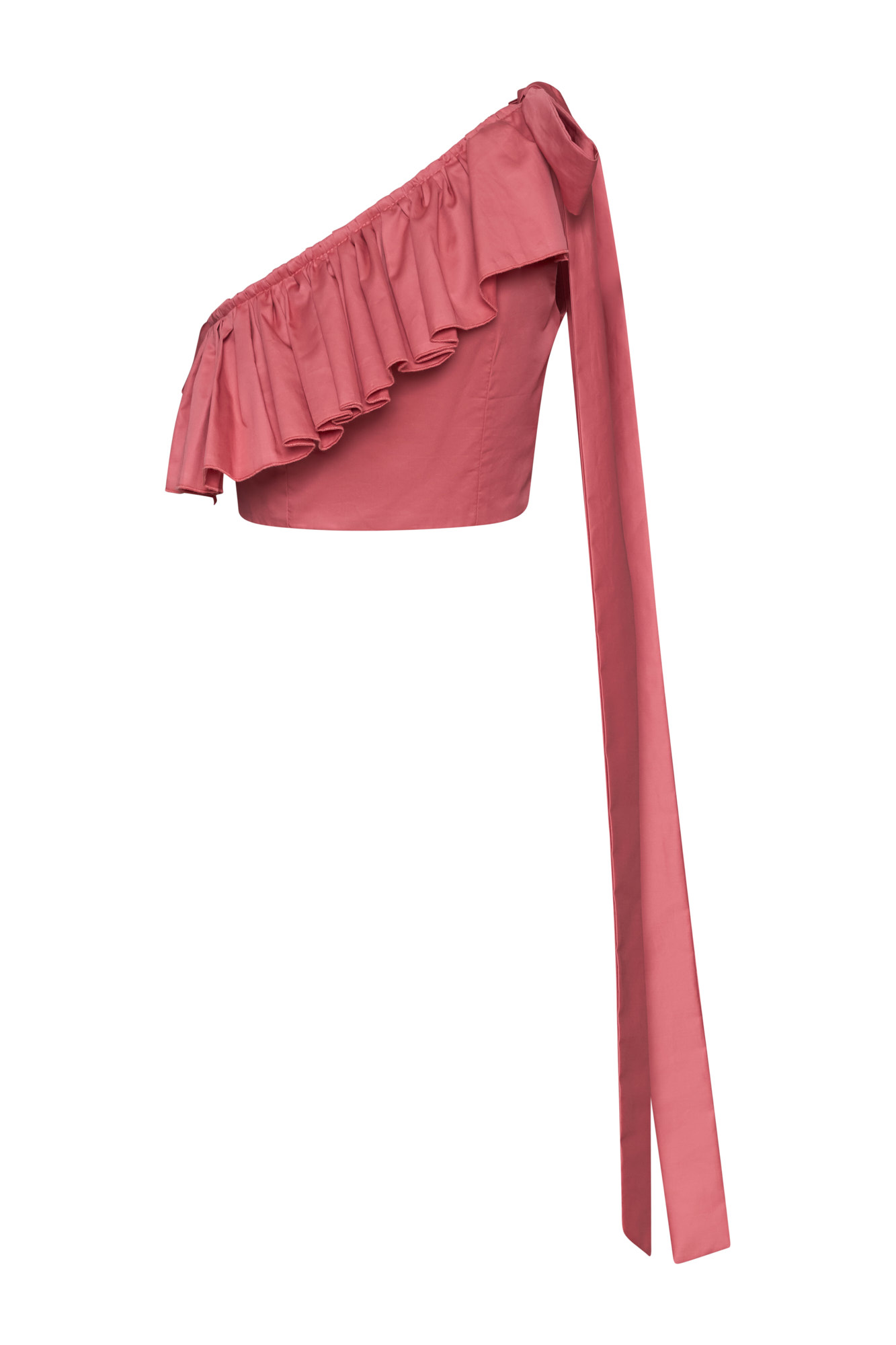 One-shoulder Top with Ruffles ST-6043 Rotten Apple