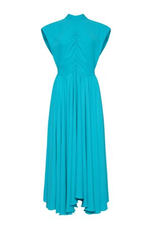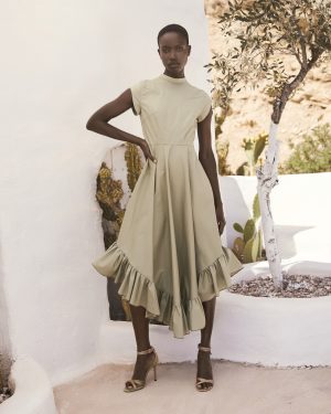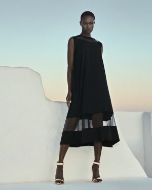 A romantic sleeveless midi dress with delicate buttons and a grateful flow, perfect for effortless elegance.